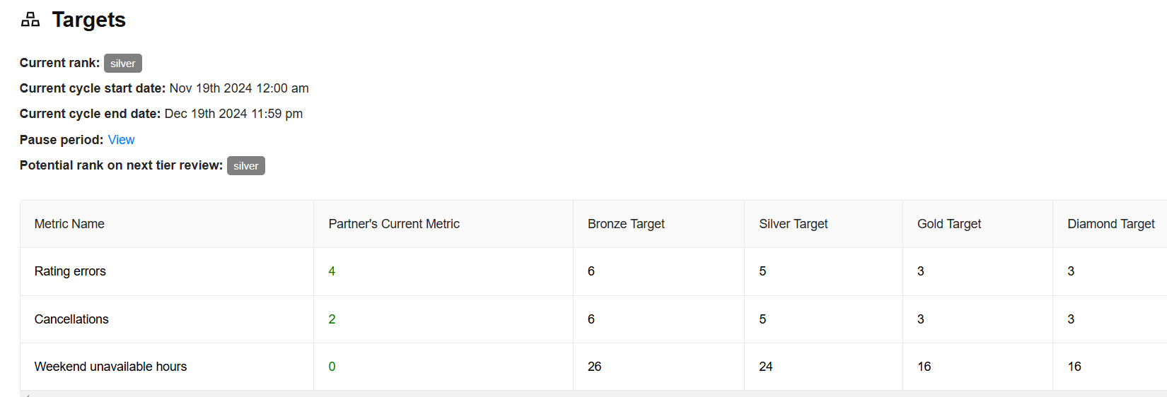 Ans: Open partner profile < click on Rich profile < Targets ( Current start date and current end date is minimum earning cycle)