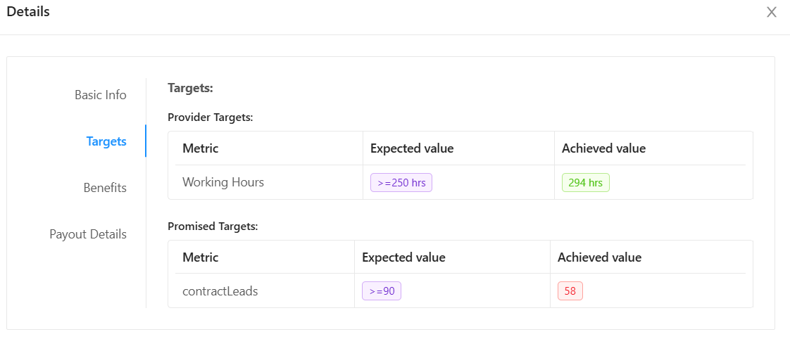 We can check if partner expected metric are met if yes, then we can check payout details.