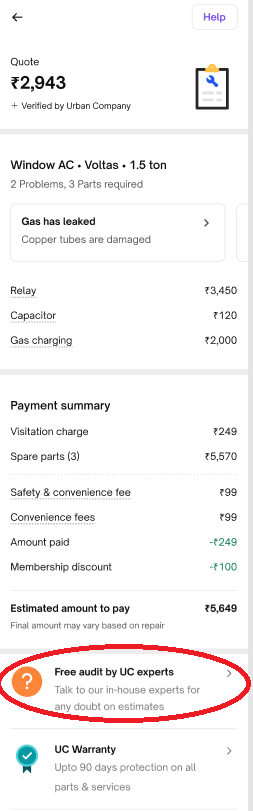 In 5 mins me UC expert technician customer ko whatsapp call karege aur customer and aapse baat kar ke issue samjega