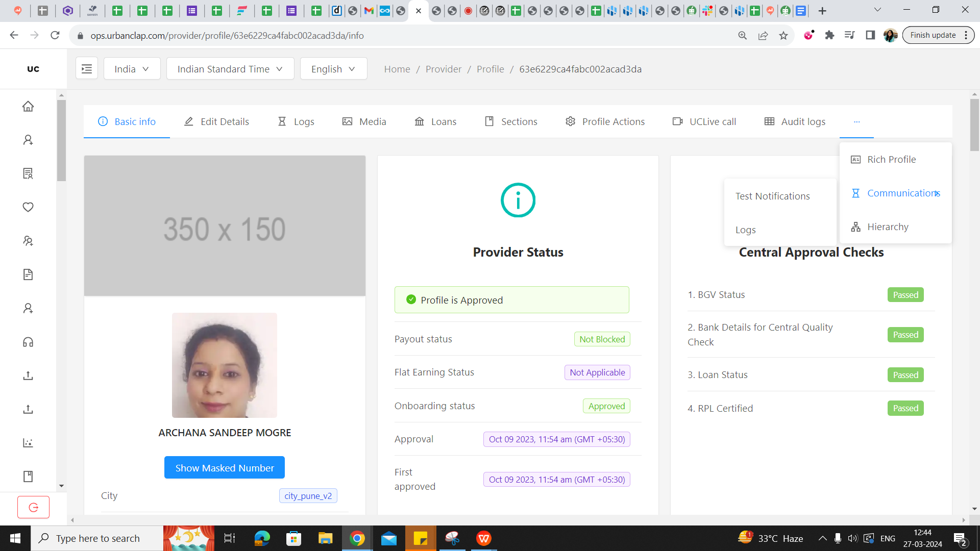 Link to access notification logs - https://ops.urbanclap.com/provider/profile/611e2919e6c9c326001106ff/communicationLogs