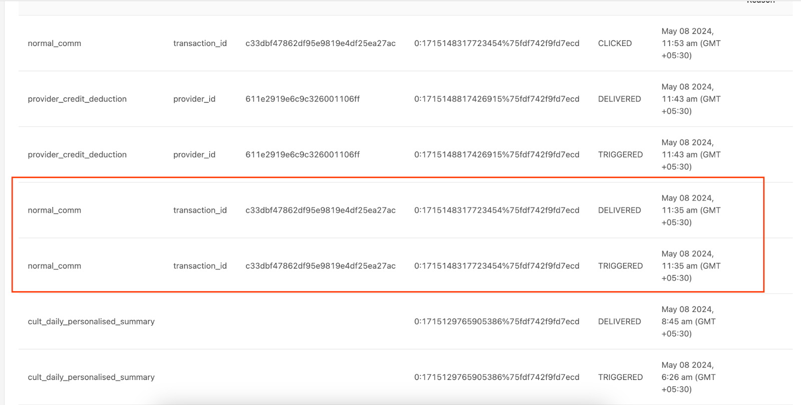 STEP 3: Check in comms logs notifications triggered to pro at that time for the lead (exlusive_lead_comm, normal_comm are the usual MM campaigns). If the notifications delivered at that time are in DELIVERED(Notification was delivered in partner app or CLICKED(notification sent and partner has clicked on notification) state. We need to inform pro that everything has worked fine and they were able to see and accept the lead.