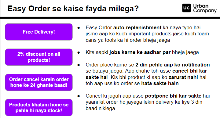 UC will be placing orders (also known as Easy orders) for the Partners. This is being done to ensure partners have a sufficient supply of products if they are not buying from their end from UC shop.