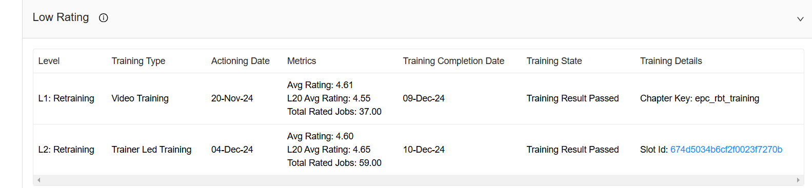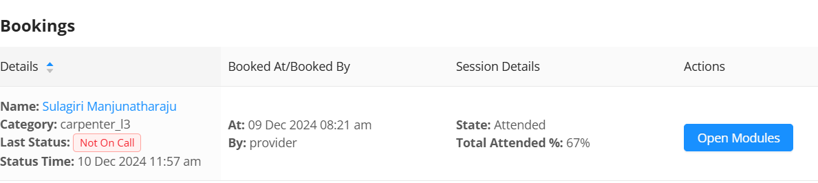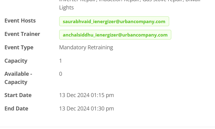 We can check slot booked for training