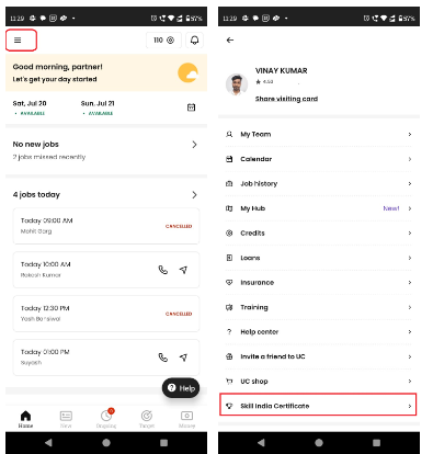 SKILL India Certificate is available on Partner app shown below, please ask partner to refer the Skill India Certificate from their App Itself. In case Skill India Certificate is not available then please inform the partner that Skill India Certificate is issued every year around March month and they are sent a notification around deduction of 40 credits for this, if they responds to the notification then Skill India Certificate will be issued , no changes in name will be considered , if they have incorrect name then ask Partner to upload PAN Card with updated name so that Profile Name can be changed and then in next notification of SKILL India Certificate registration partner can get certificate with their corrected name.